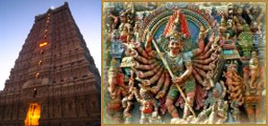 This abode of Arunachaleswarar, the Annamalai hills at Tiruvannamalai has varied interpretations over the years. It is believed these hills took different forms at different period of time and age. During the Kirthayugam it was in the form of fire. The next Threthayugam it took the form of emerald, known as manikkam in Tamil. In the course of Dweparayugam it existed in the form of gold. Now in Kaliyuagam it has taken the state of rocky hill. At Arunachaleswarar temple there are eight lingams known as Ashtalingam.