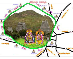 Girivalam (also called Giri Valam) is an spiritual custom observed from many centuries by people in south India. During Girivalam people circumambulate the Arunachala hill (also called Annamalai) and worship 8 siva lingams placed around the Arunachala hill